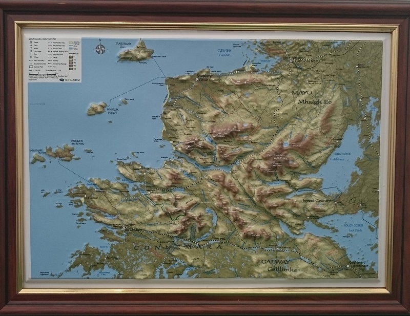 Mountain ranges in this area include the Mweelreas, the Twelve Bens, the Maumturks, the Partry Mountains and the Sheefry Hills.